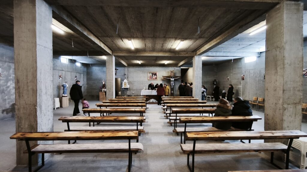 Nakon mise obišli smo gradilište crkve te se uvjerili u značajan napredak radova. Crkva zajedno s kriptom je ozidana, ugrađeni su otvori, a upravo se u kripti trenutno i održavaju sveta misna slavlja. U tom prostoru već su postavljeni oltar i klupe, čime je omogućeno redovito okupljanje vjernika.