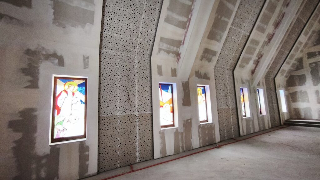 U gornjem dijelu crkve u tijeku su radovi na uređenju stropa, dok se u sljedećoj fazi planira postavljanje podnog grijanja i izrada estriha. Posebnu pozornost privlače i već postavljeni oslikani prozori – vitraji, koji prostoru daju dodatnu duhovnu i estetsku vrijednost.