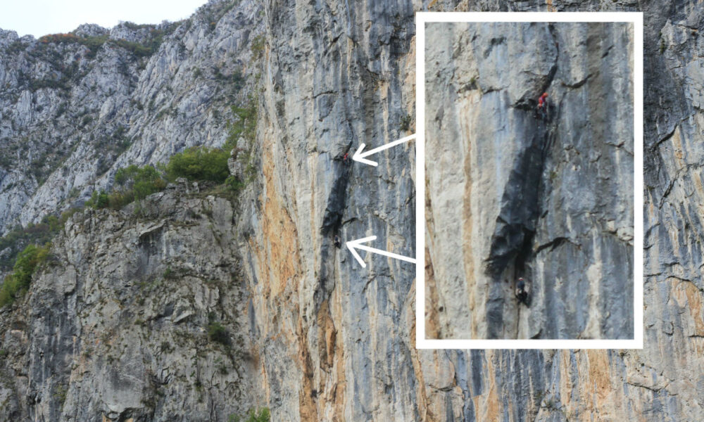 Prošli tjedan vozeći se iz Jablanice prema Doljanima na stijeni Ilijna gruda uočili smo alpiniste kako se penju uz ovu zahtjevnu stijenu.