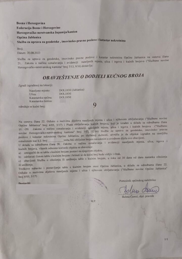Na području općine Jablanica nastavlja se proces dodjele kućnih brojeva, kako bi se poboljšala organizacija i lakša identifikacija adresa.